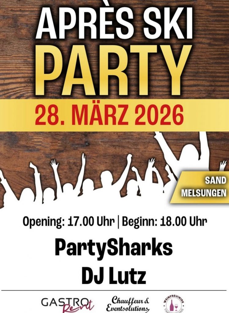Gute Nachrichten für alle Feierfreudigen: Die ursprünglich wetterbedingt verschobene Aprés-Ski-Party am Sand in Melsungen findet nun wie geplant am morgigen Samstag, 28. März 2026, statt.
